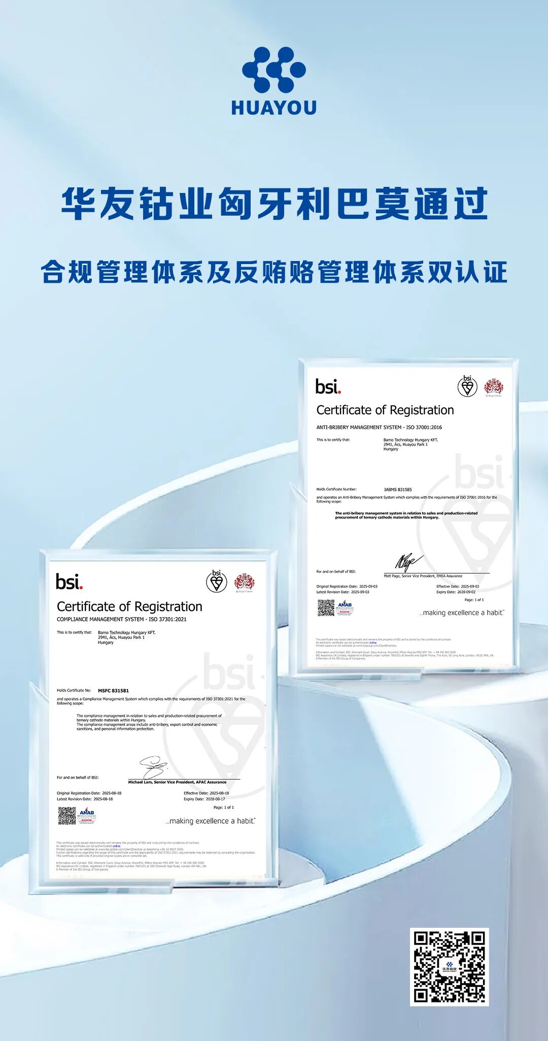 匈牙利首家 | 華友匈牙利巴莫通過合規(guī)管理體系和反賄賂管理體系雙認證